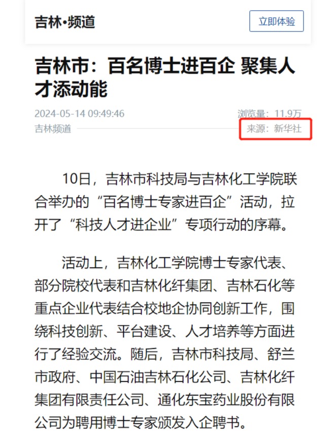 据介绍,吉林市科技局开展“科技人才进企业”专项行动,全面调动驻吉高校、科研单位科技创新资源,匹配企业技术需求,实施有组织科研和有组织科技成果转化,旨在形成一批核心技术攻关项目、帮助企业解决一批技术难题、转化一批科技成果、建设一批产学研合作平台、培养一批优秀科技人才,促进企业高质量发展,推动形成新质生产力。